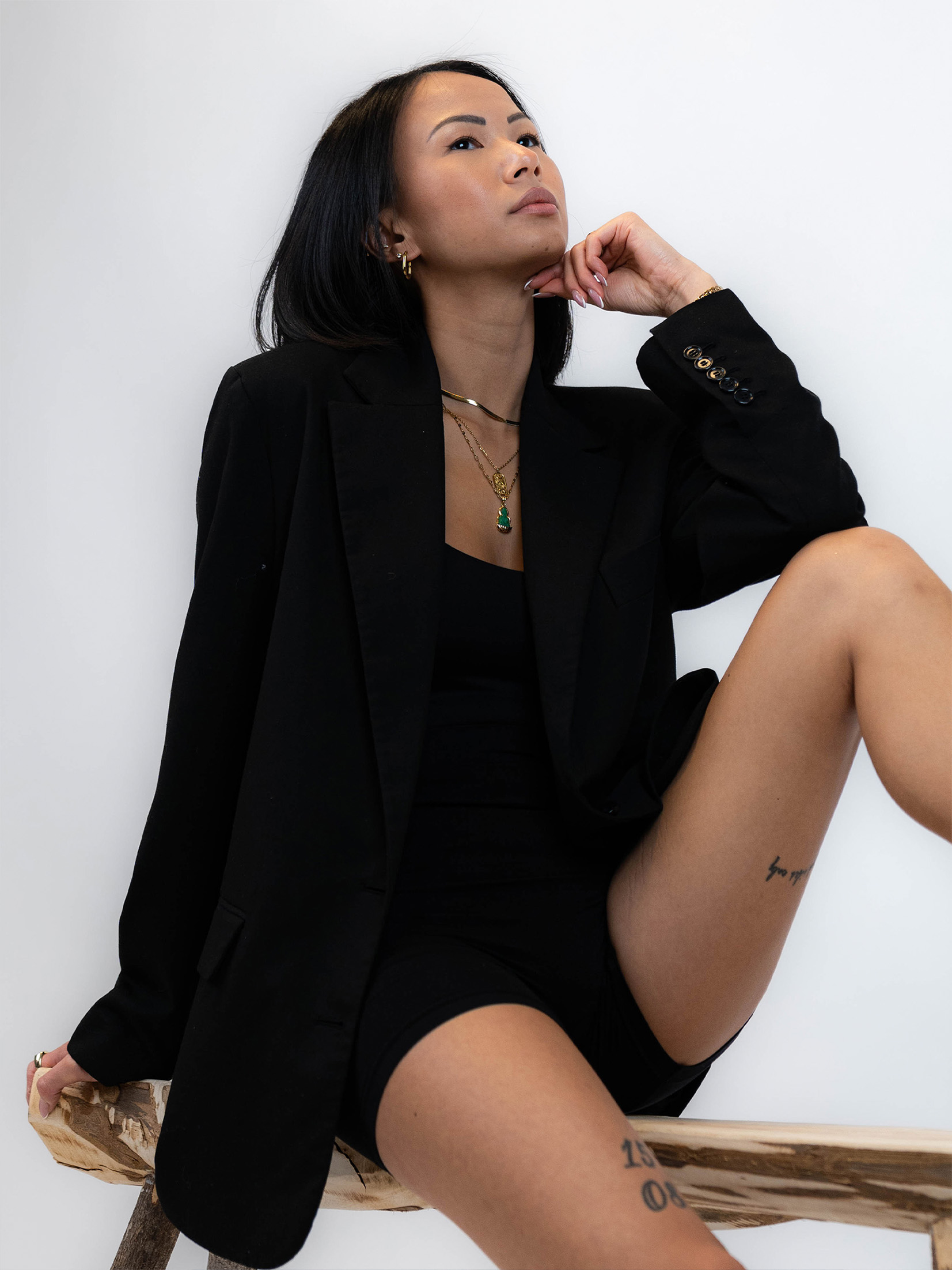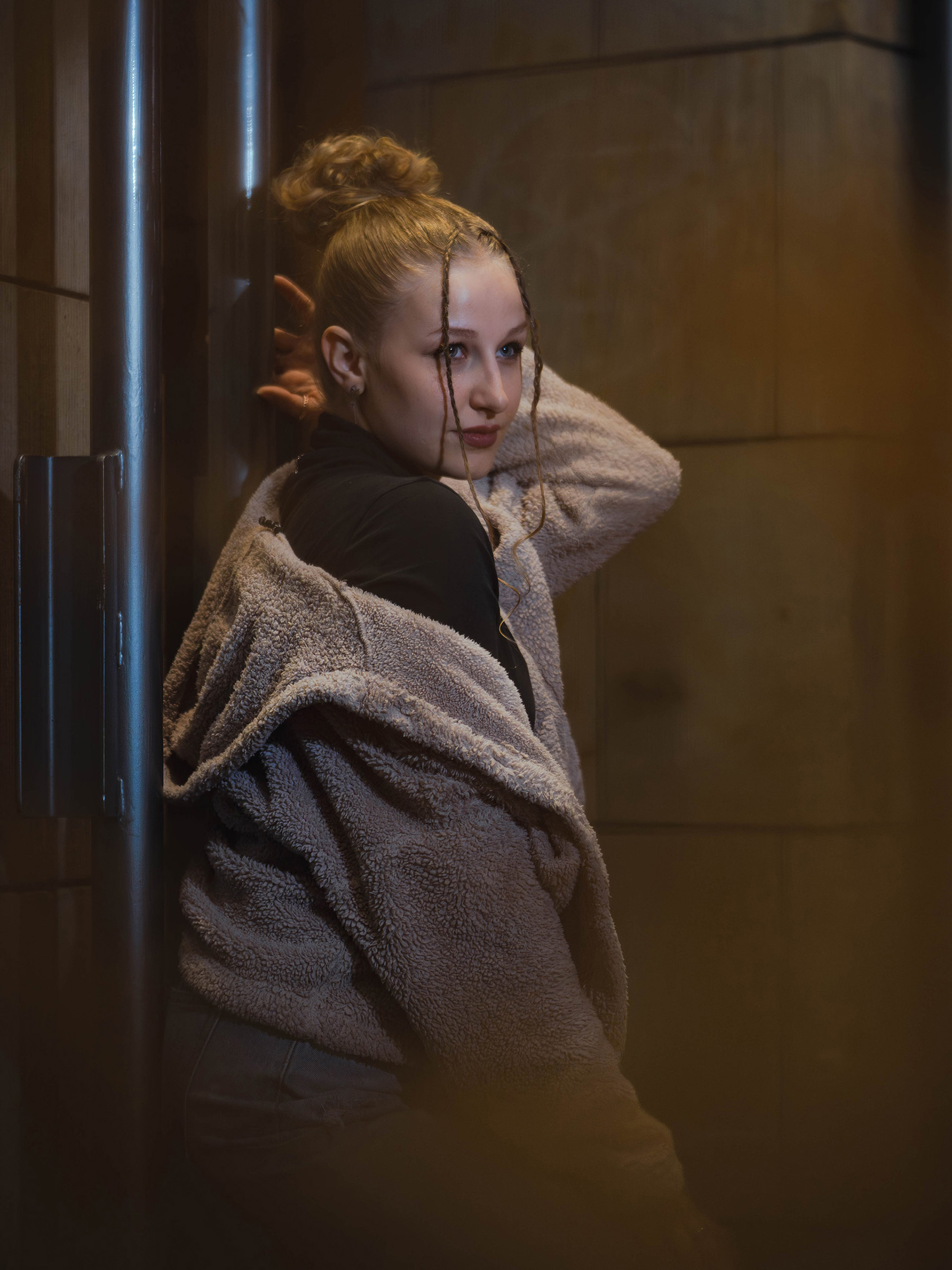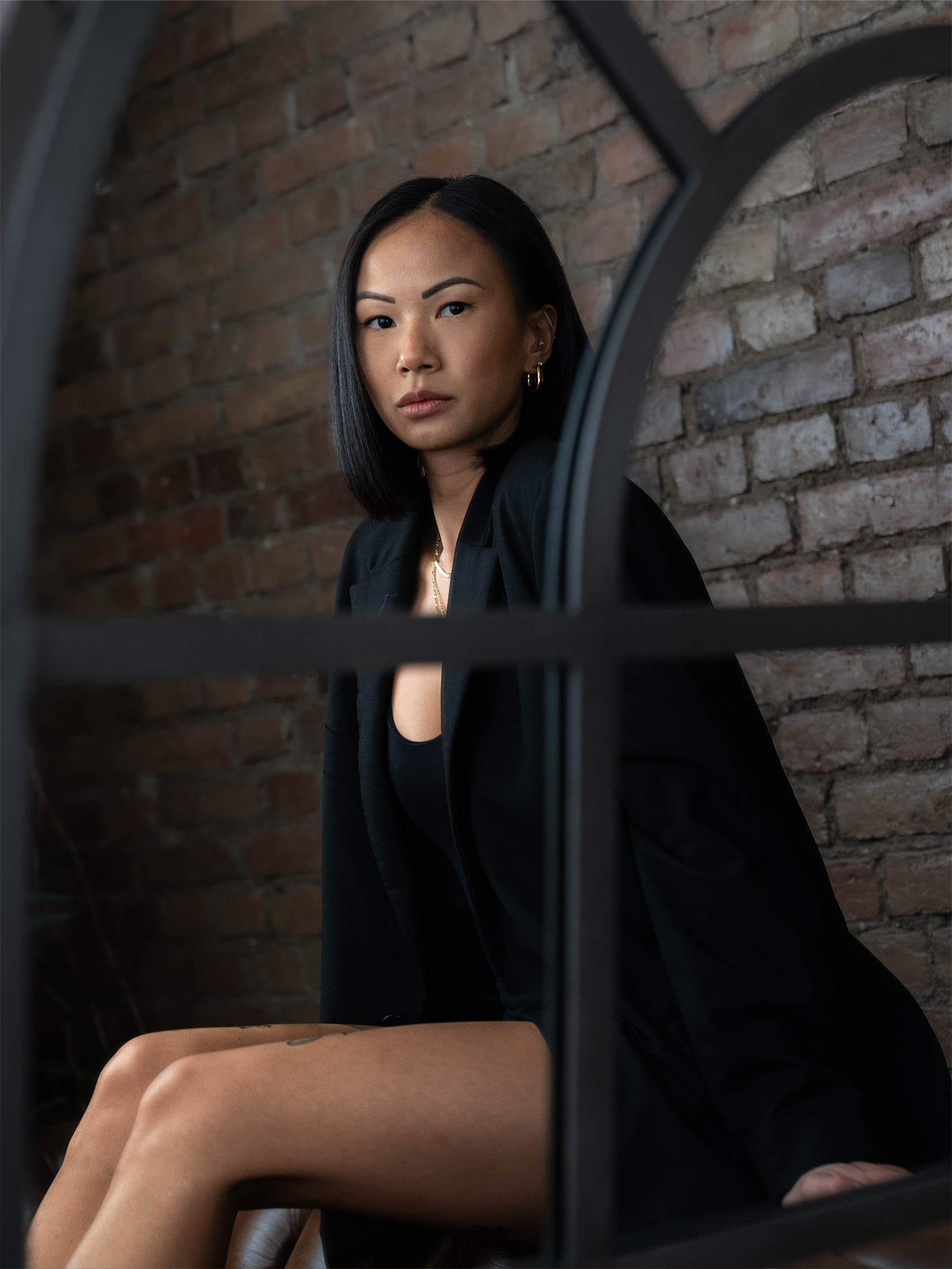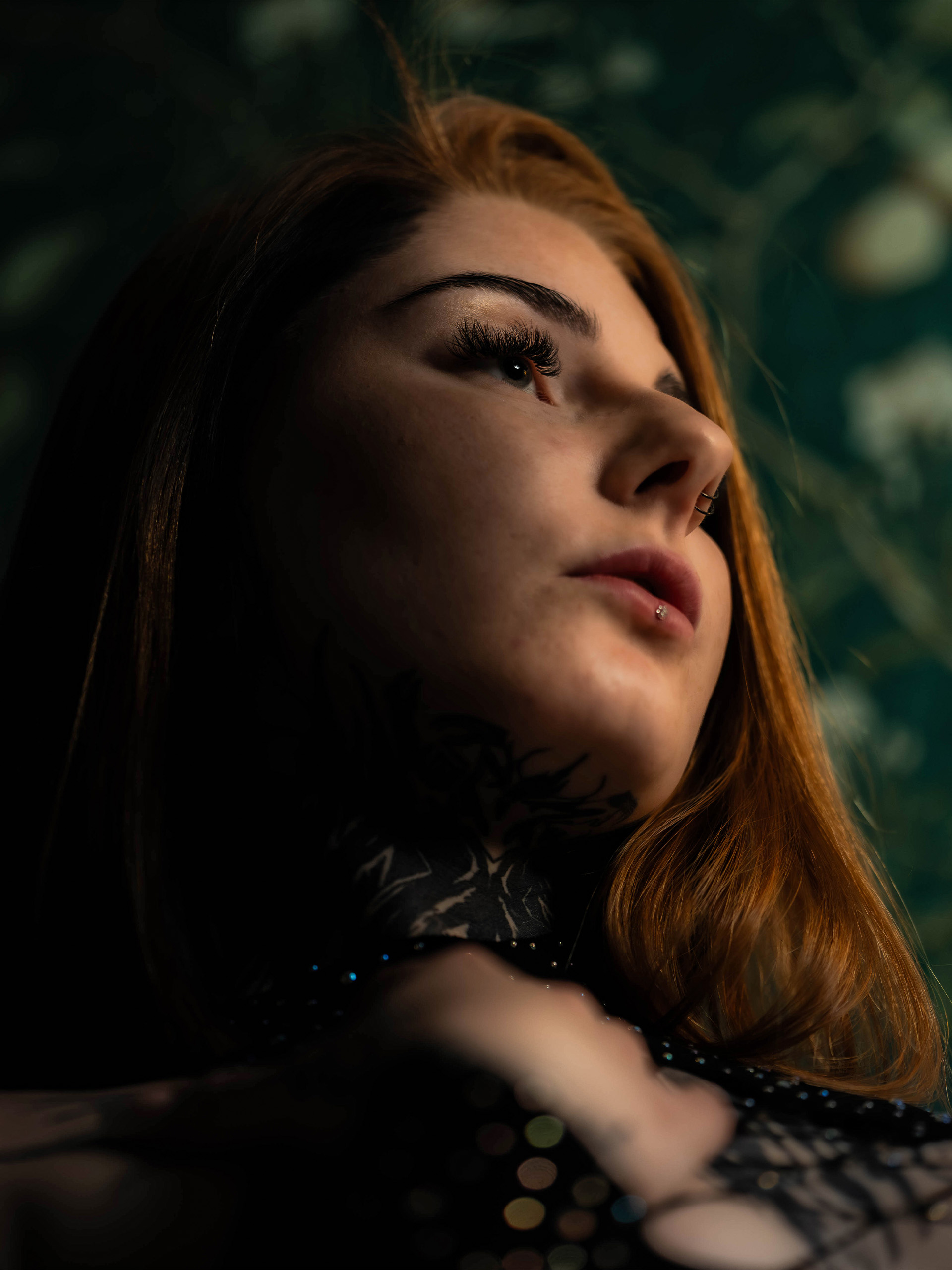 Bei diesem Fotoshooting habe ich mit der Spannung zwischen Licht und Schatten gespielt, um die sinnliche und kraftvolle Ausstrahlung des Models hervorzuheben. Die tiefen Schatten und das gezielte Licht schaffen eine dramatische Atmosphäre, die gleichzeitig die Eleganz und Stärke der Pose betont.